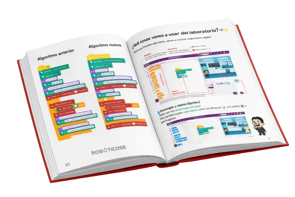 En Roboticoss te entregamos todo listo: una guía completa para profesores con ejercicios prácticos y un laboratorio virtual para que implementes IA desde el primer día.