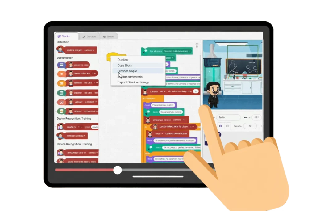 Todo se trabaja con un laboratorio virtual, donde el niño crea y controla casas inteligentes: luces, ventiladores, accesos y sistemas automáticos.